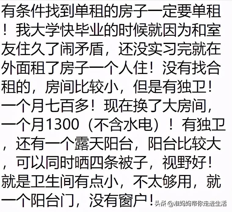 如果生活压力太大,只能合租,最好找个独立卫生间的,平时交集和摩擦不会特别多