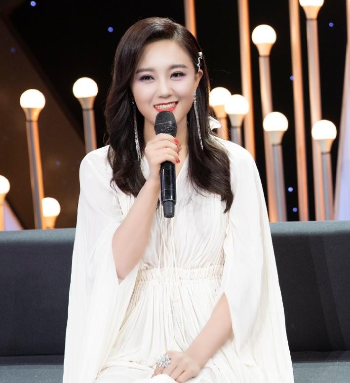 她身穿v领白色礼服,搭配一双浅色的高跟鞋,蜂腰凸显,大秀美腿,她长发披肩,佩戴流苏型的耳饰,没有一点尘世间的烟火气,她言笑晏晏,举止优雅,整个的状态看上去令人很舒服。