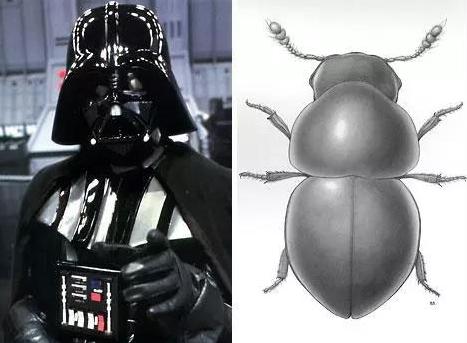 的角色。因为他的一身装束与一种学名为Agathidiumvaderi的新发现物种甲虫非常相似,两者都有宽广发亮的头部,眼睛也非常相似,所以达斯·维德被用作新物种的名字。