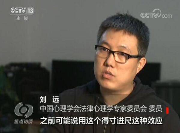 中国心理学会法律心理学专家委员会委员刘远说:“我认为在宫腔镜做开始和之前,这是两个阶段,之前用得寸进尺这种效应,一步一步让患者越来越多做检查和处置。但是一旦宫腔镜上了以后,我个人认为就不太一样了。除了心理以外,物理的控制是非常现实的,这种情况不光是这些患者,换了任何人,在那个位置上恐怕也要做后续治疗,听之任之了。”