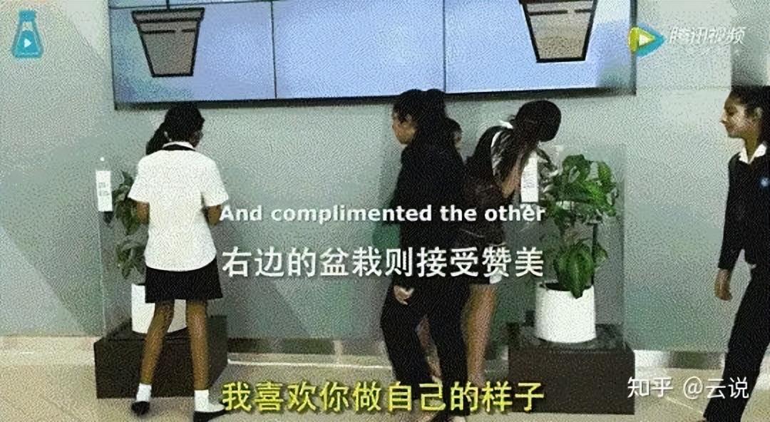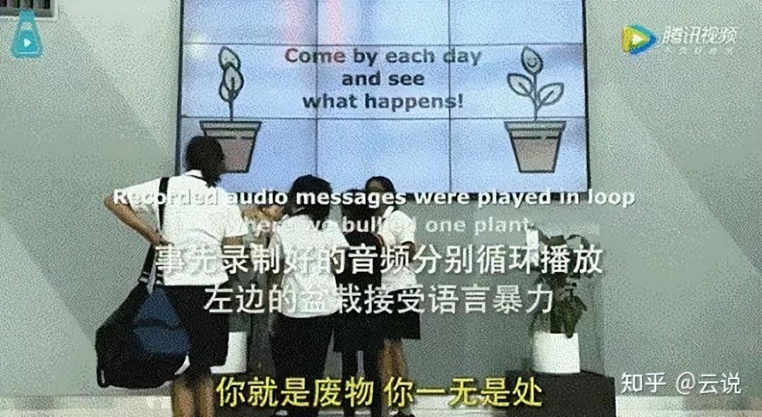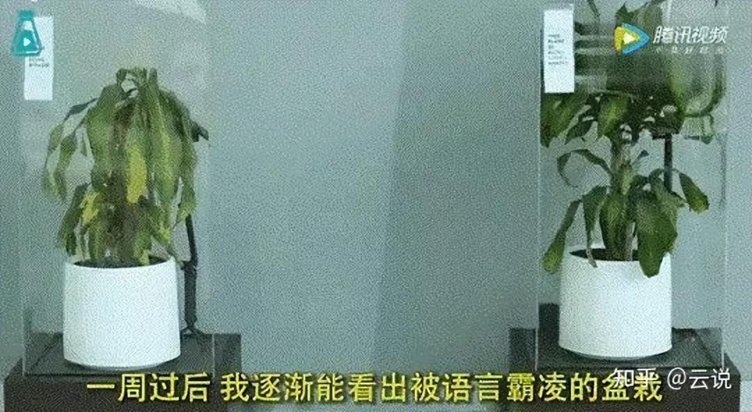 唯一不同的是,他们给左边的植物播放充满恶意的话,给右边的植物播放赞美的话。