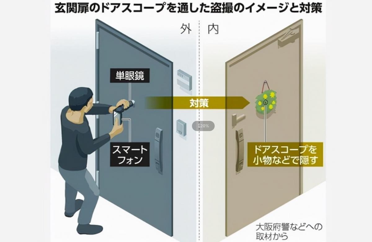 近日,日本大阪一名40岁男子,利用“猫眼反窥镜”一个月内连续“偷窥”3名女性高达9次,并且全程连接手机进行录像。这也就意味着,同一位女性曾多次被偷拍,但都没有察觉,可见作案手法是多么的隐蔽。
