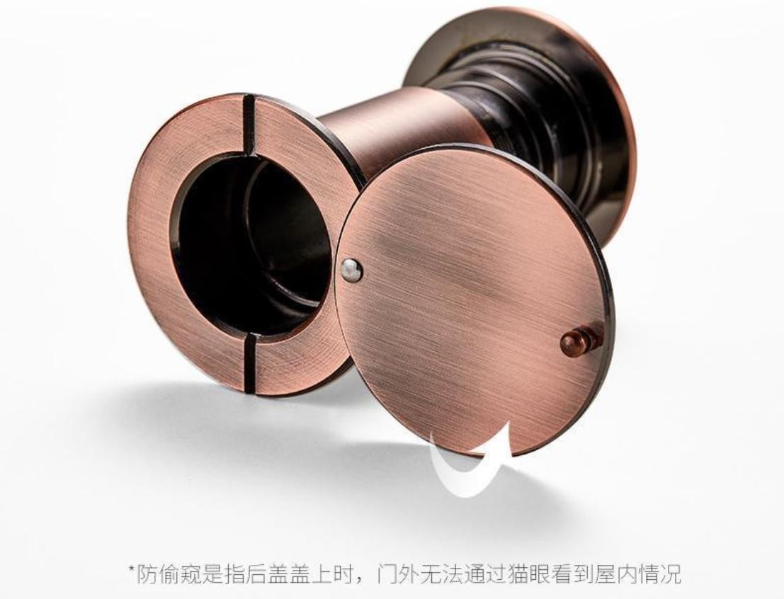 其次,可以在猫眼上安装一个猫眼盖,五金店或者网上都有出售,价格几元到几十元不等,平时不用时将猫眼盖合上,门口出现异响或者有人敲门时,再打开猫眼盖观察室外情况,直到确定安全后,再将门打开。