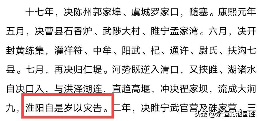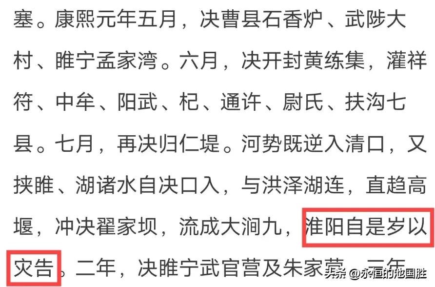 也罢,【清史稿·志一百一】记载【康熙元年归仁堤决口,淮阳自是岁以灾告】