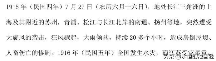 看到没有?民国四年(1915年)那么多受灾地区,唯独没有江苏省!