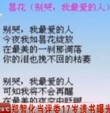 为此郑智化还曾留下遗书试图了结自己的生命,这件事后郑智化好长时间都不愿碰触感情,直到遇到了小他七岁的设计师张钰雅。