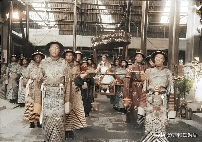 身份尊贵如慈禧,出行自然也是前呼后拥的,咱们可以看见照片上,慈禧一个人稳稳地坐在轿子中,旁边的奴才为他撑着伞,担心慈溪晒着太阳,而这个轿子被众人稳稳地抬在手上。