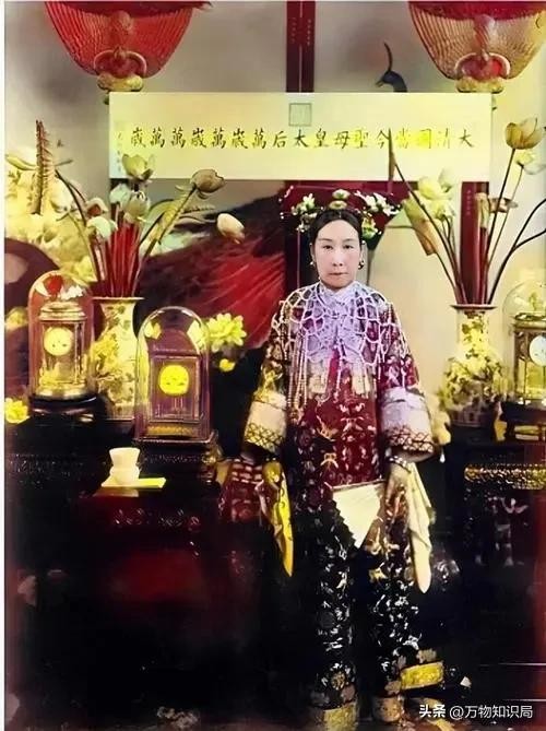 即便是不懂清朝的服饰的,也可以看出这一身衣服价值不菲,也正是因为衣服的作用下,慈禧才显得更加的贵气逼人。