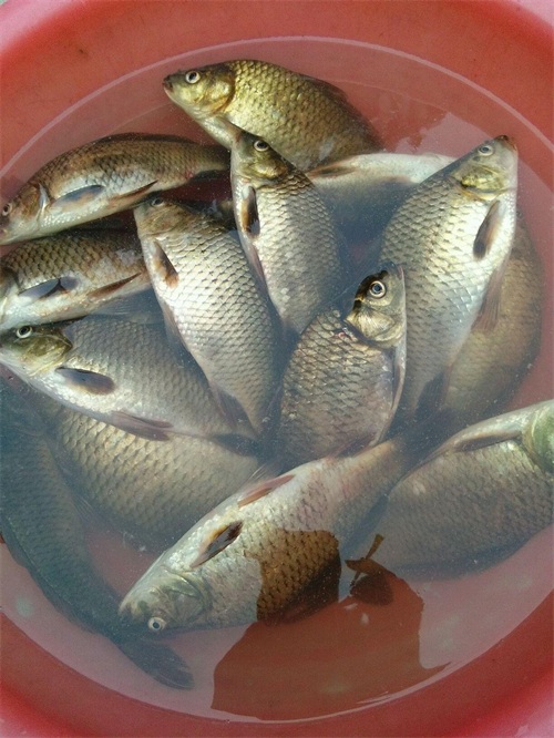 不一会儿的时间邓刚就钓了20多条,盆里蹦跳的还都是大鱼,小的他不要。