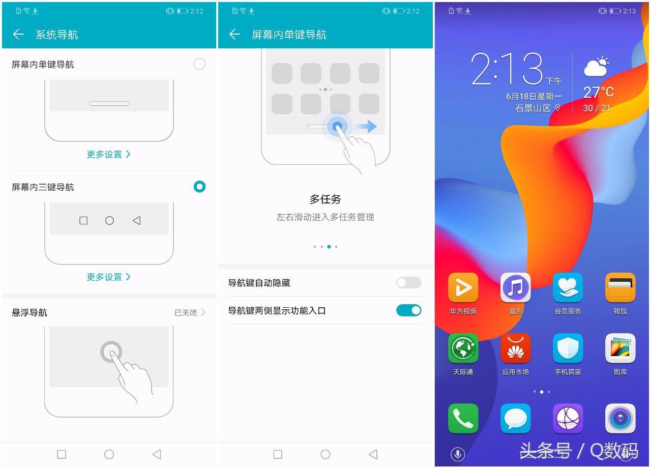 荣耀Play也针对全面屏的设计加入了新的操控当时。出了常规的虚拟按键外,荣耀Play还能后虚拟出Home键,可以通过点按、长按以及滑动Home键实现返回、退回主界面、切换多任务的操作。