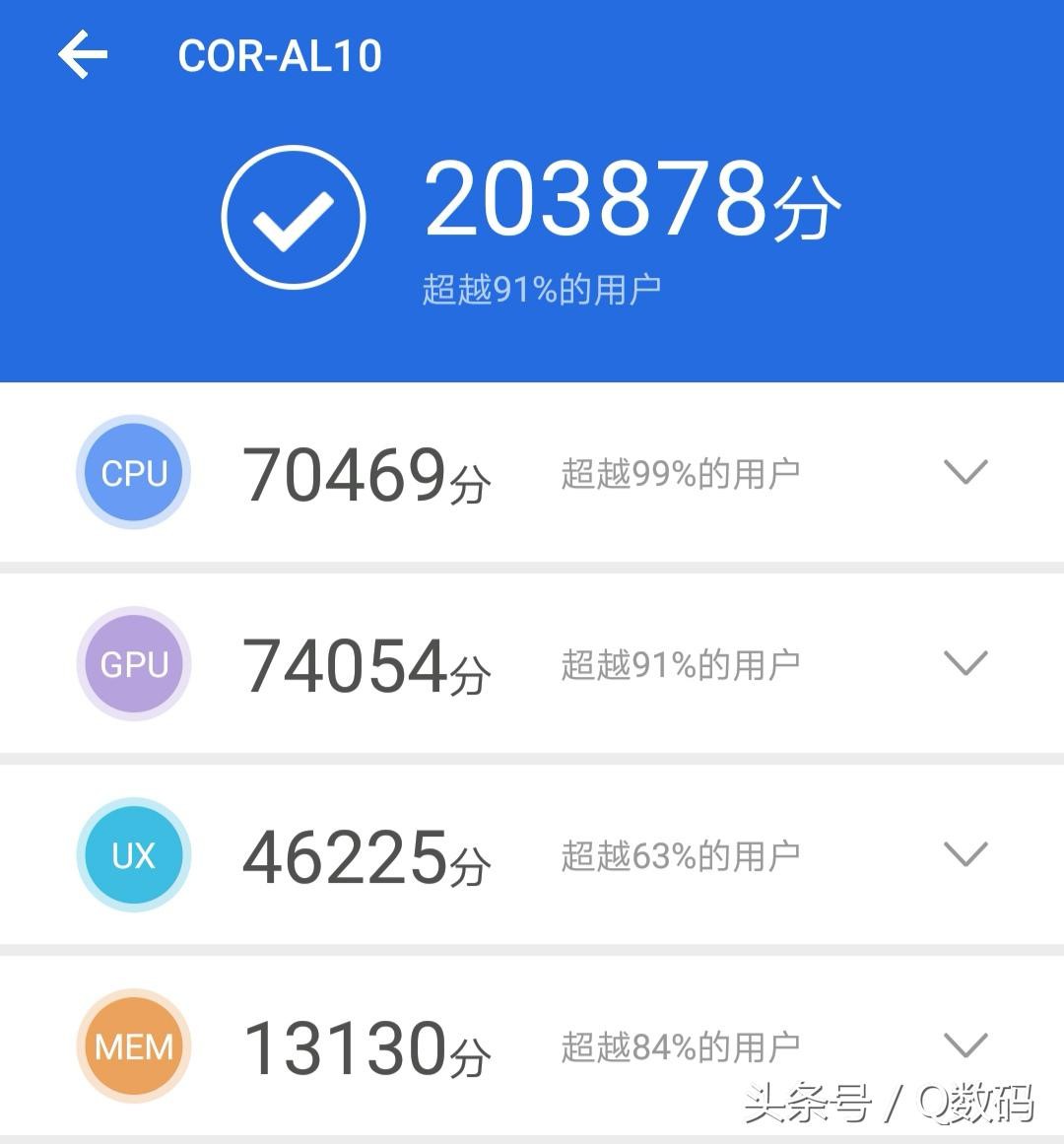 GPU Turbo技术的优势主要体现在游戏以及使用体验层面,而对于跑分来说并不会起到提升分数的效果,因此在使用跑分软件测试后,手机的得分与其他采用麒麟970的手机处于同一水平。
