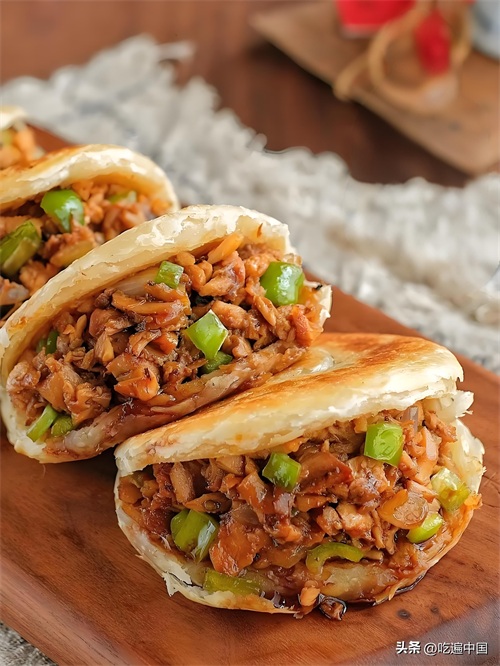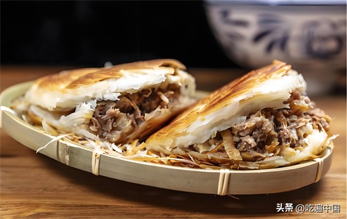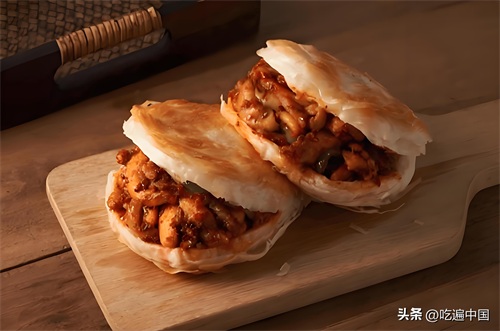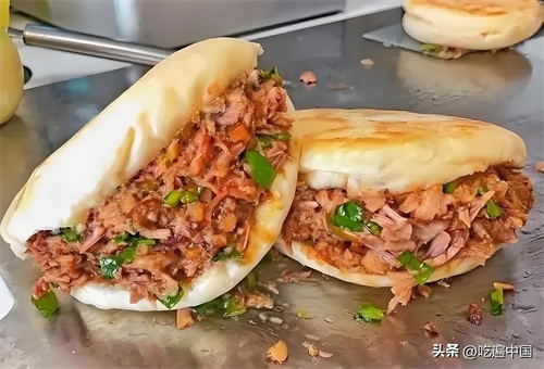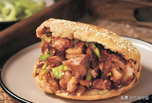 肉夹馍的肉质鲜嫩多汁,馍外焦里嫩,夹上各式配料,简单却又令人回味无穷。