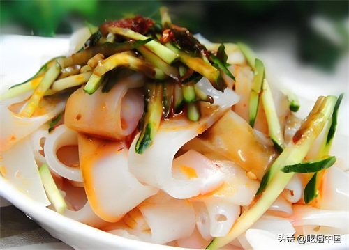 凉皮以其清爽的口感和多样的配料而受欢迎。宽而薄的面条切成条状,搭配各种酱料和配料,清凉可口,尤其适合夏季食用,成为消暑佳品。