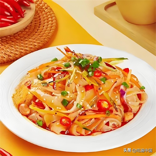凉皮是一种源自陕西的传统美食,属于擀面皮、面皮、米皮、酿皮的统称。凉皮以其独特的制作工艺和丰富的口味而闻名,是中国北方地区广受欢迎的天然绿色无公害食品。