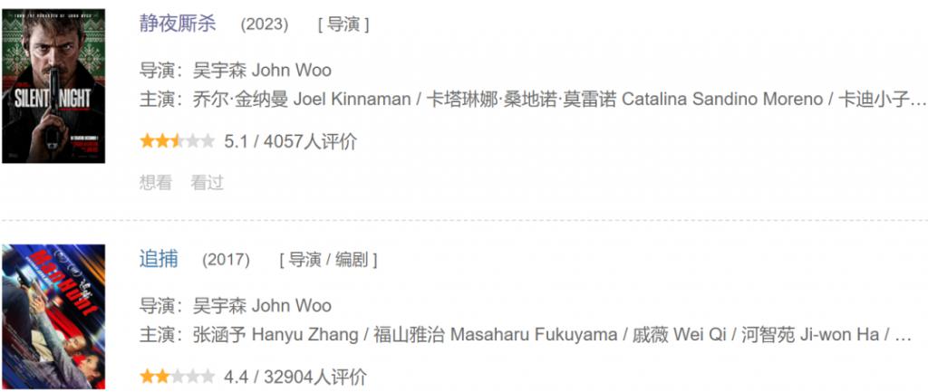 近十年,吴宇森执导的作品只有《追捕》《太平轮》《静夜厮杀》《太平轮》等寥寥几部。