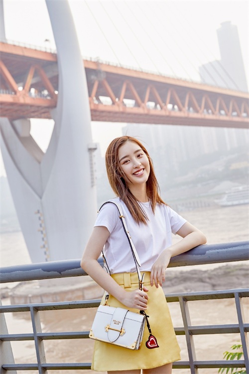 邓恩熙凭栏而立,上身穿纯色T恤,下身搭薄荷绿半身裙,带来清爽的气质感,色调简单而雅致,充分展示出邓恩熙自带的少女感,齐肩的秀发任性地搭在肩部,单肩挎时尚风琴折小包包,凹出时髦魅力。