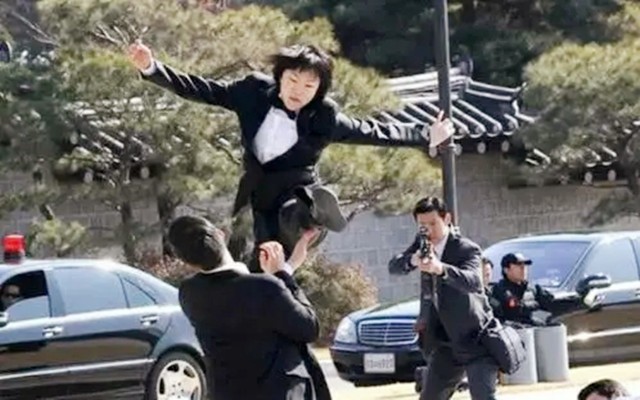 这个过程要求大家快速配合,如同变魔术一样,围观者分不清雇主是躲在哪件黑西装之下,随后保镖们纷纷纷飞身跳上车,井然有序地逃之夭夭。