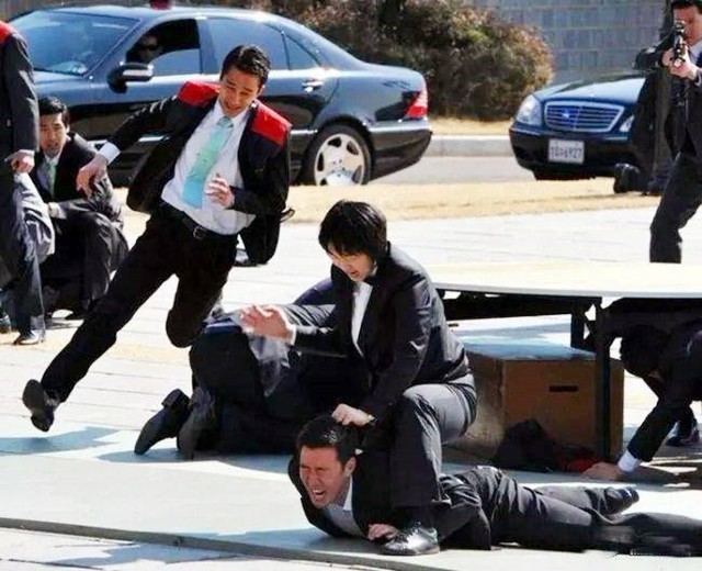 除了墨镜之外,保镖的黑西装也能在关键时刻起到掩护的作用。