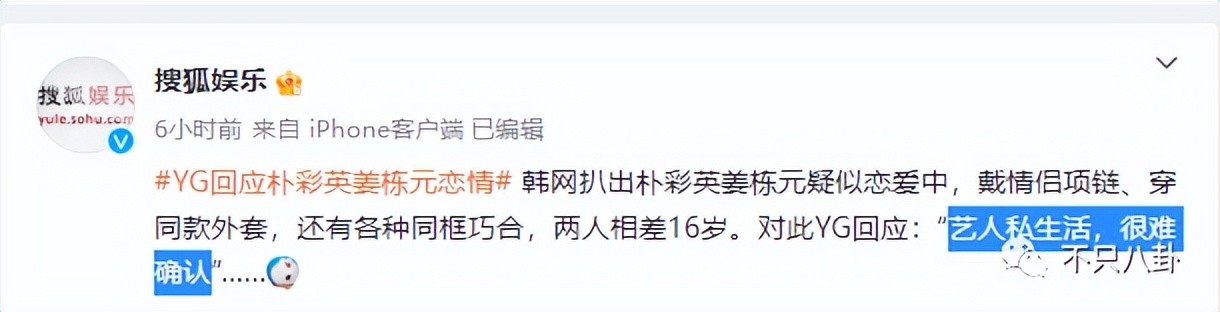 YG一开始是这么说的哈,“艺人私生活,很难确认。”