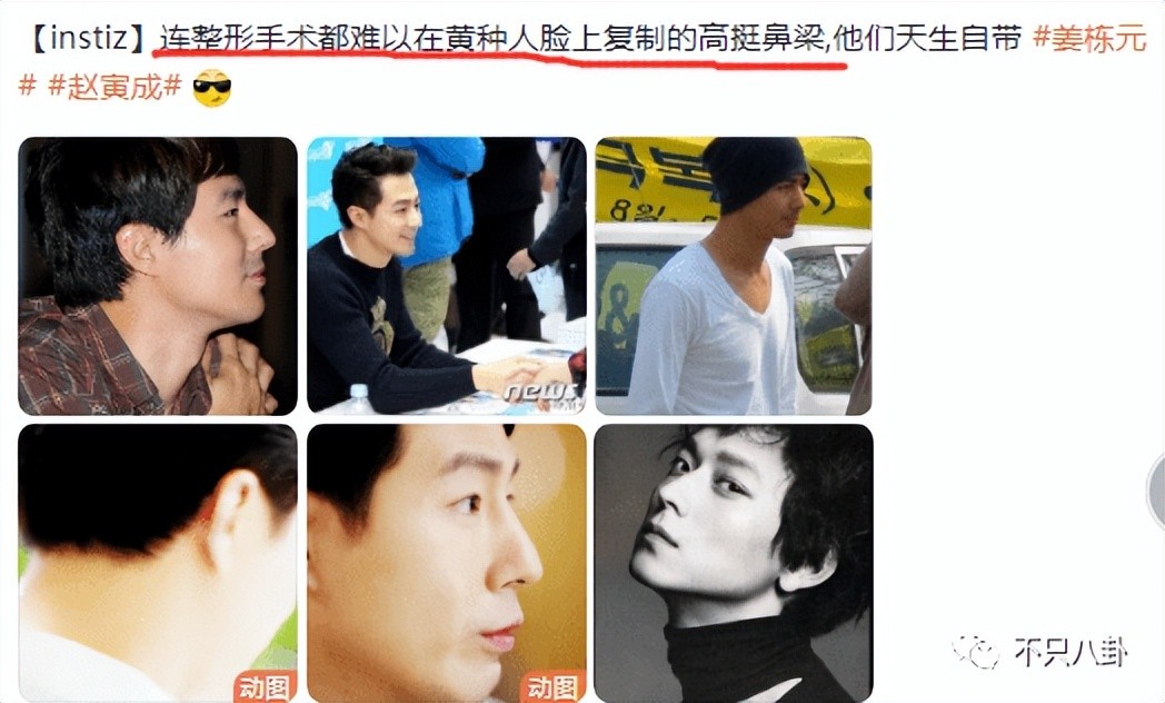 姜栋元曾被韩媒评价为是“连整形手术都难以在黄种人脸上复制的高鼻梁”艺人。(建议韩媒下次限定在韩国,别黄种人了)