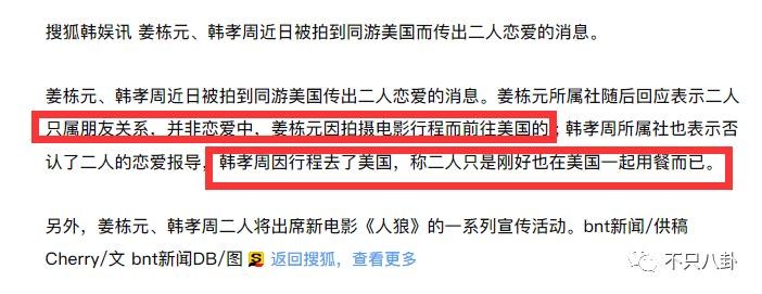 同样对姜栋元和朴彩英的绯闻采取不承认也不否认的糊弄态度。