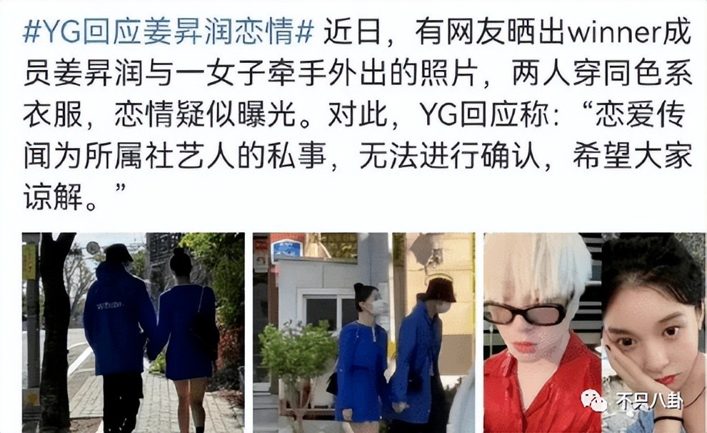 比如姜昇润被拍到和女孩子牵手逛街,YG就说恋爱是艺人私事,无法进行回应。