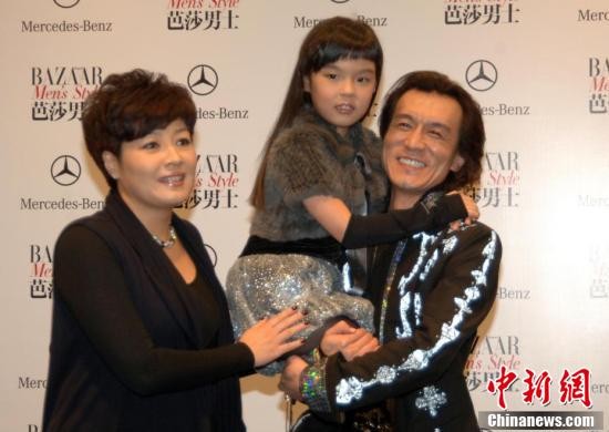 图为2009年12月4日,2009年度《芭莎男士》 “中国品位成功年度人物颁奖盛典暨绝对吸引力派对”在北京国家体育馆隆重举行。一家三口齐亮相的李咏携妻女赶来捧场。 中新社发