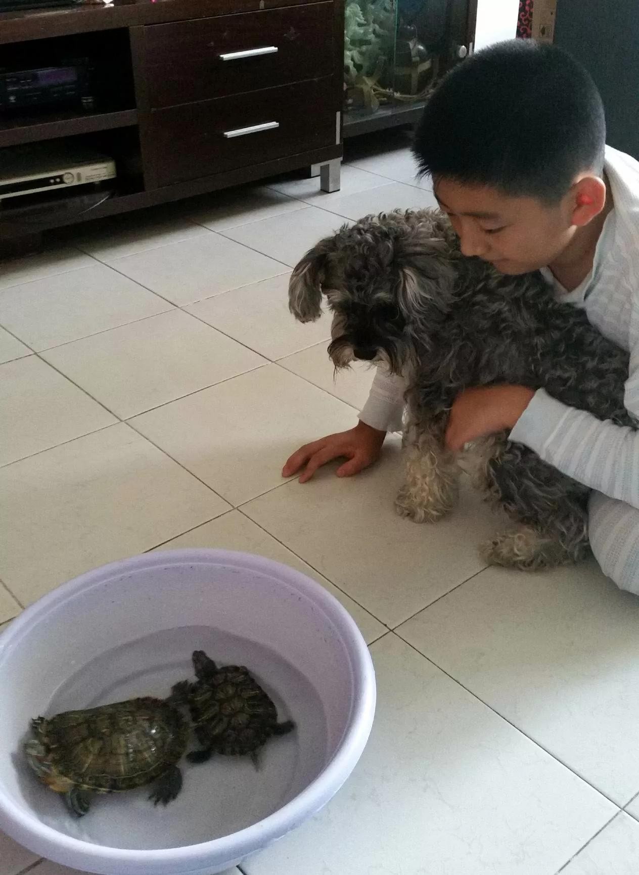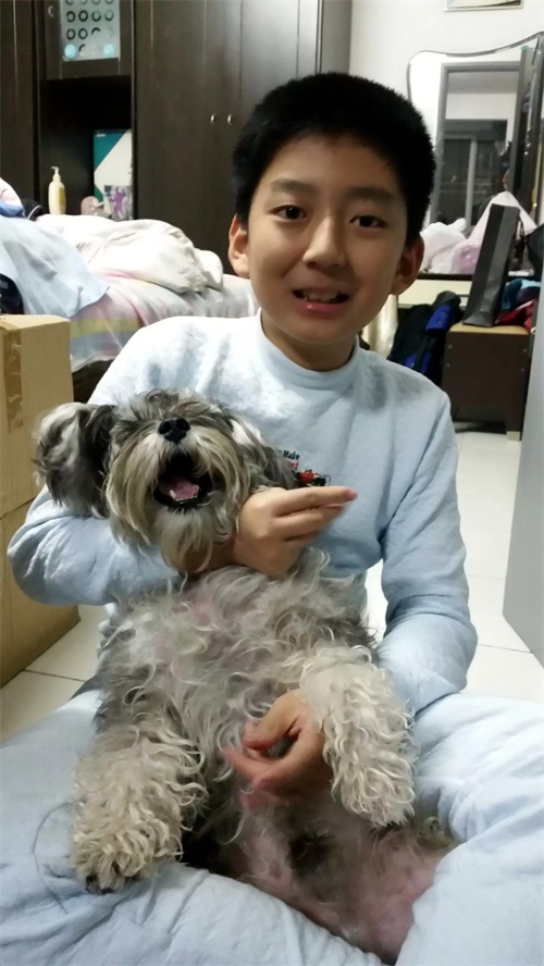 可能是小孩从小喜欢动物,独生子家庭也没有其它玩伴,卷毛无异是儿子的最好伙伴,卷毛也很眷恋儿子,相互很投机,从小在一起不离不弃。