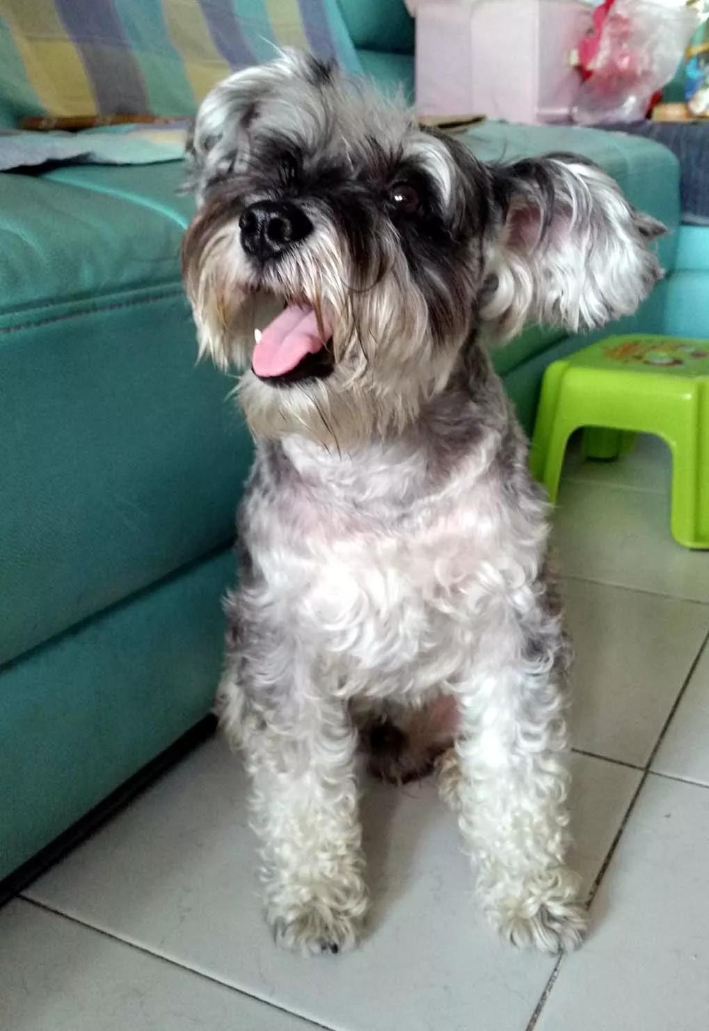 卷毛,是德国品种雪纳瑞,因为身上银灰毛发打卷如卷毛狮子狗故名字。