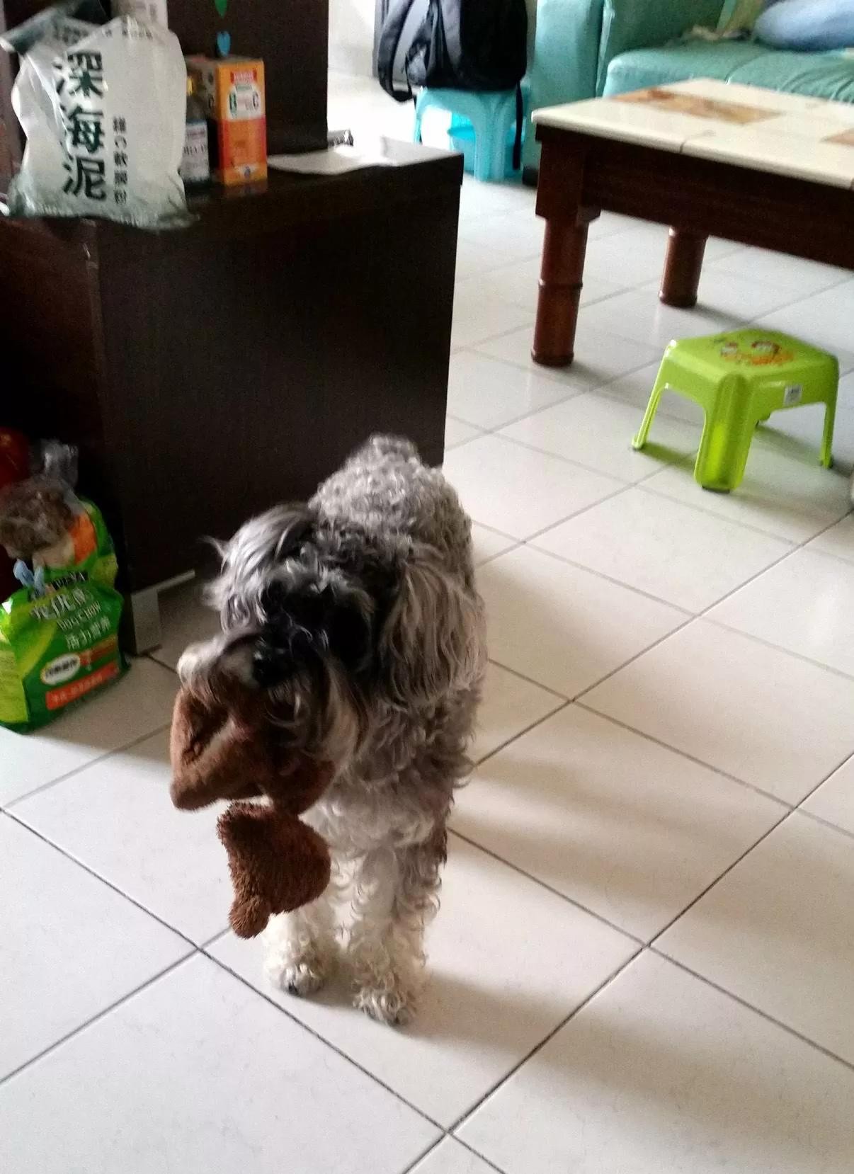 卷毛是夫人侄子2009年从香港花2000元大洋买的,买回家不到一周用奶嘴一口一口养大,后因他媳妇怀孕生子怕影响小孩于2012年8月送到家里来,一养十余年,每天早晚遛狗-每周给卷毛洗澡成了自己的半个职业。