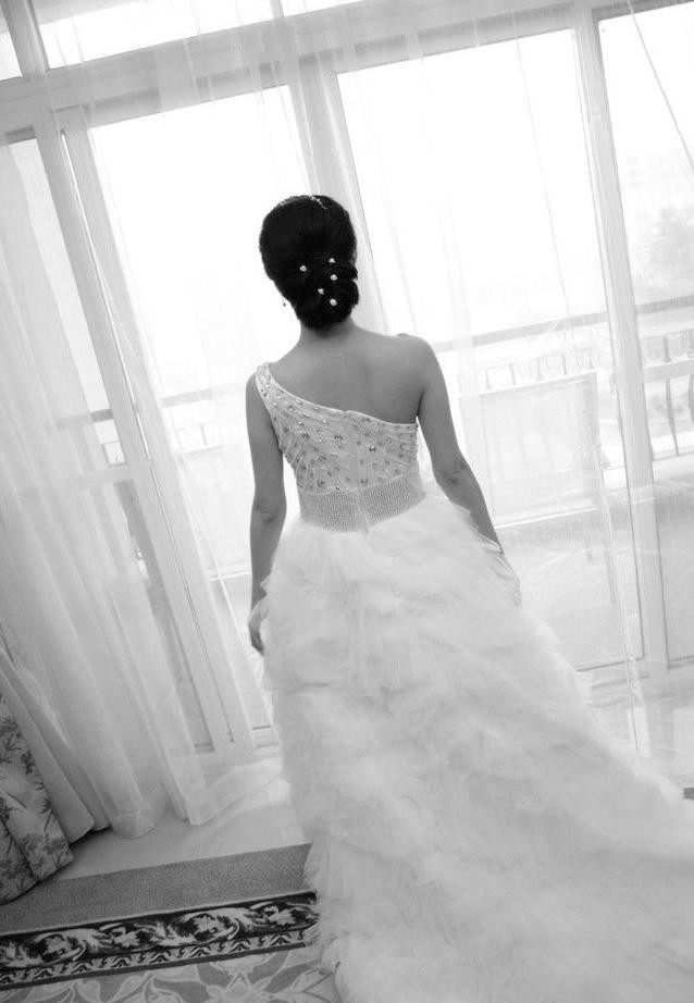 她和妈妈站在妹妹身边,看着她梳妆打扮,穿上了婚纱。