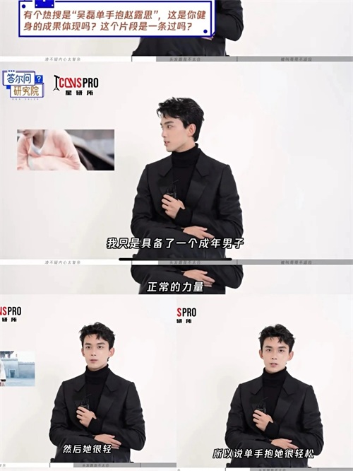 在《星汉灿烂》采访时,被问到单手抱赵露思的镜头是否是健身成果的体现时,吴磊只回了一句:“我只是具备了一个成年男子正常的力量。”