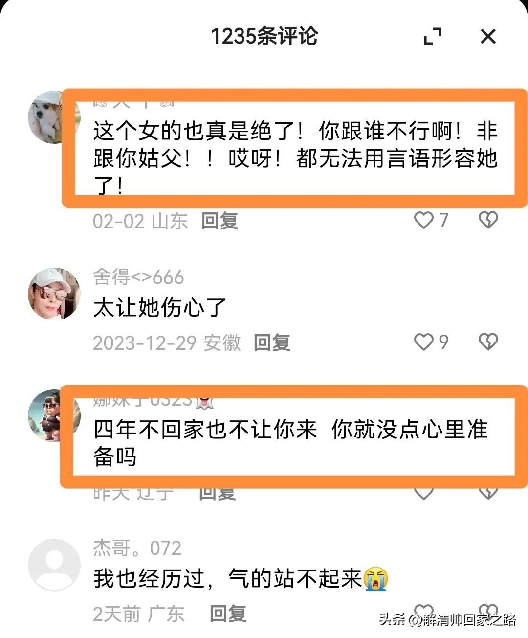 网友1:这个女的也真是绝了!你跟谁不行啊!非跟你姑父!!哎呀!都无法用言语形容她了!