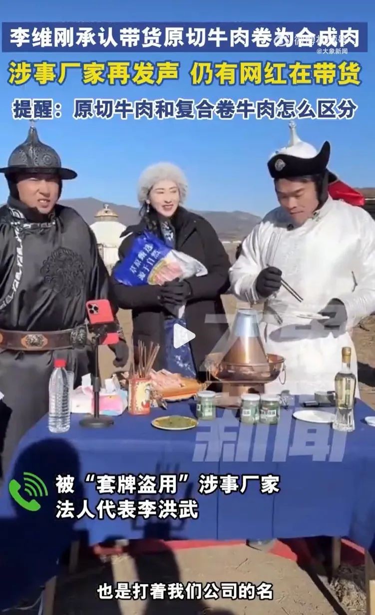 值得一提的是,李维刚在视频里表示,事情发生后他非常吃惊,“因为我是当地农牧局邀请过去直播的,经销商给我看了各种检测报告,我试吃的样品都是非常好的牛肉卷,但是大家收到的却不一样了,我不知道为什么会这样。”