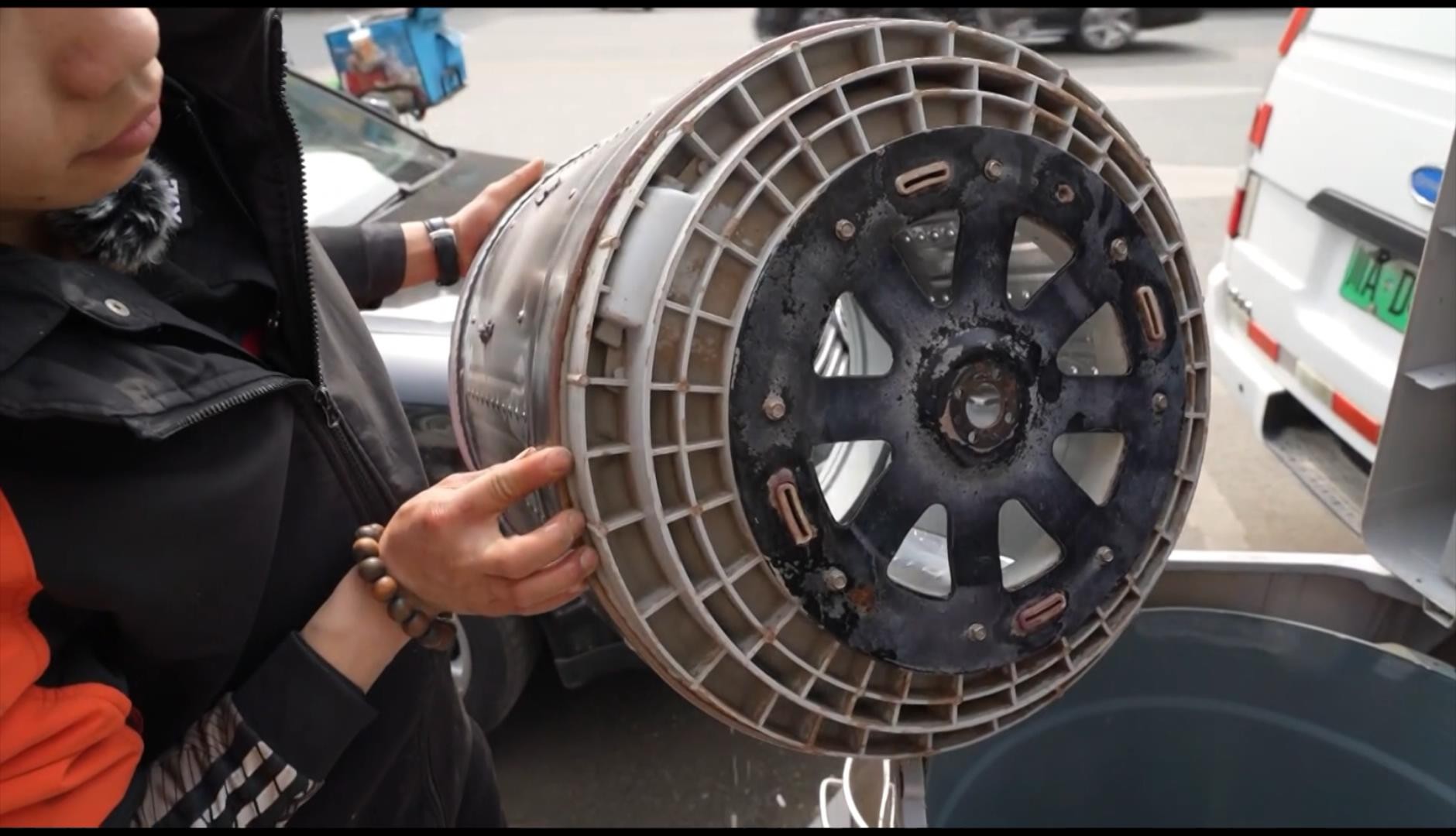 第一步:使用网红洗衣机清洗剂前,观观先请杜师傅为我们将洗衣机拆解,分离出污槽、波轮盘、平衡圈、洗衣机内桶、洗衣机外桶等,这些与日常衣物清洗息息相关的洗衣机零部件究竟能有多脏呢?洗衣机的主人王女士看到后惊呼出声:“怎么这么黑!不敢用了,你们帮我洗干净嘛!”随后杜师傅把洗衣机恢复原状。