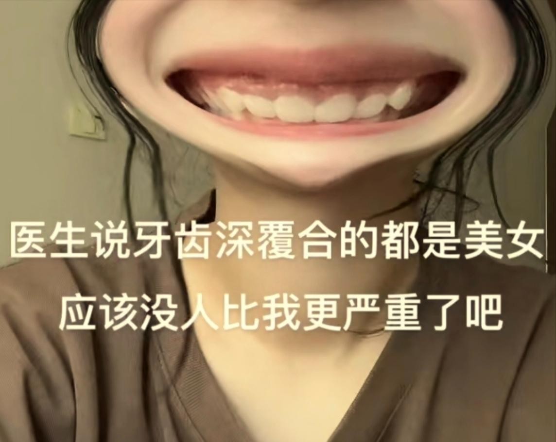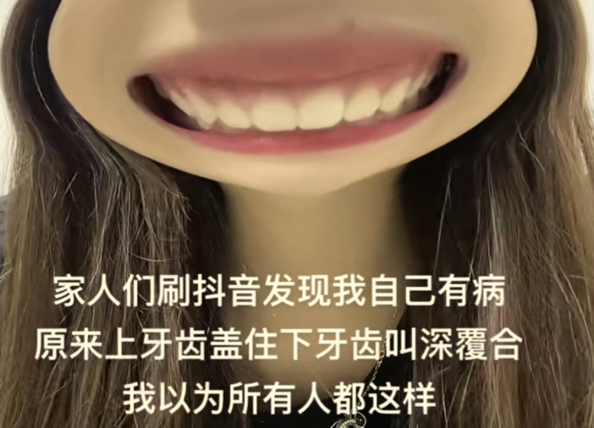 最近在某音刷到很多#门牙鉴赏大会#,许多人是深覆合却不自知,以为很多人都这样。还有人说“深覆合会下巴短,还会有很重的法令纹”“医生说牙齿深覆合的都是美女”……