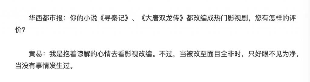 但黄易的书迷、《大唐双龙传》的剧粉、对家的书迷和对家的剧粉,却在网上掐得"死去活来"。