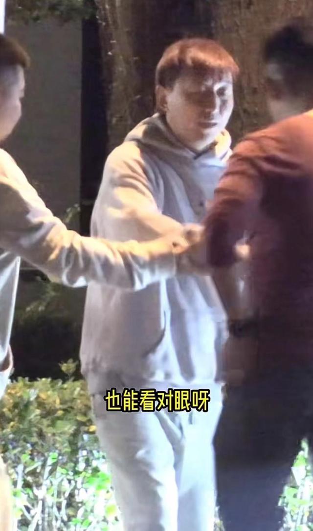 当天夜色已深,陈羽凡和一行友人外出,酒足饭饱后,他们站在马路牙子上等待网约车。在这群中年男人中,有一个身影吸引了大家的注意。
