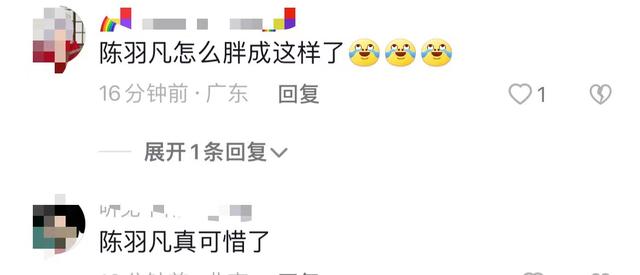 翻看评论区,大家都在惊讶于陈羽凡发福的身材。