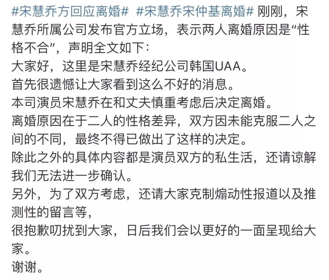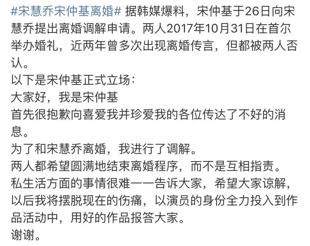 2019年7月22日,宋慧乔与宋仲基正式离婚。