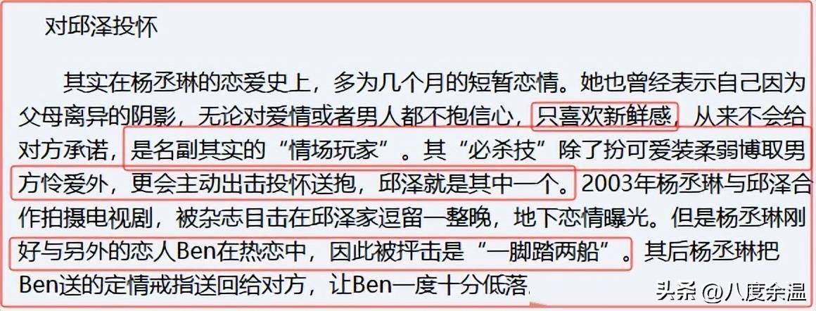 更为有趣的是,当时杨丞琳正和男友Ben处于热恋状态,如今跑到邱泽家中停留,被指责同时与两人交往。