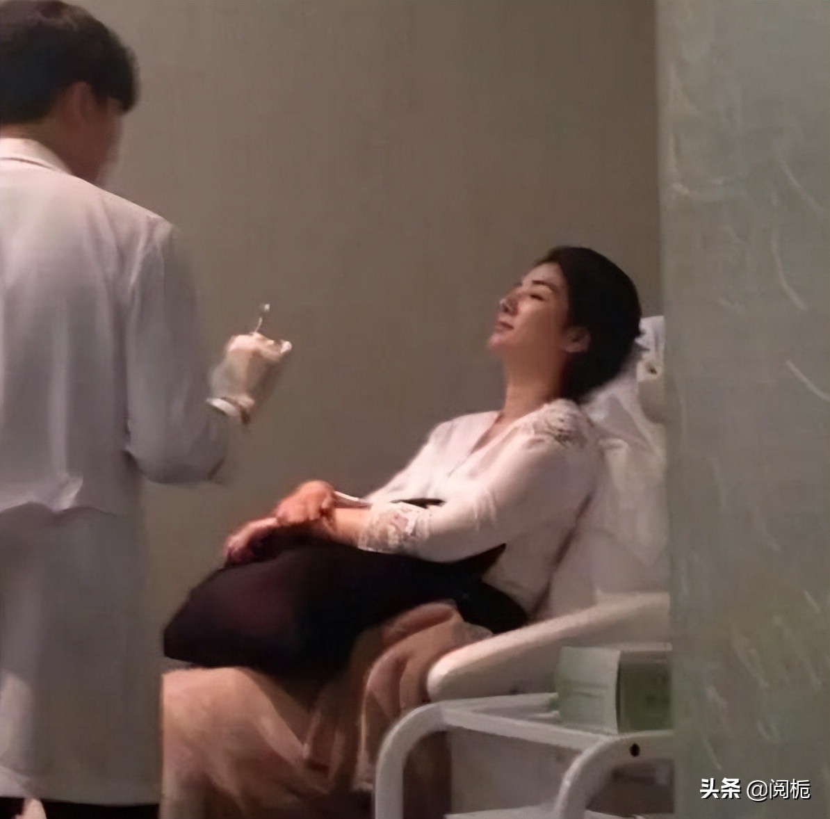 这是媒体曝光的黄奕打美容针的照片,这是已经注射之后的她,看起来一脸享受地躺在椅子上休息。