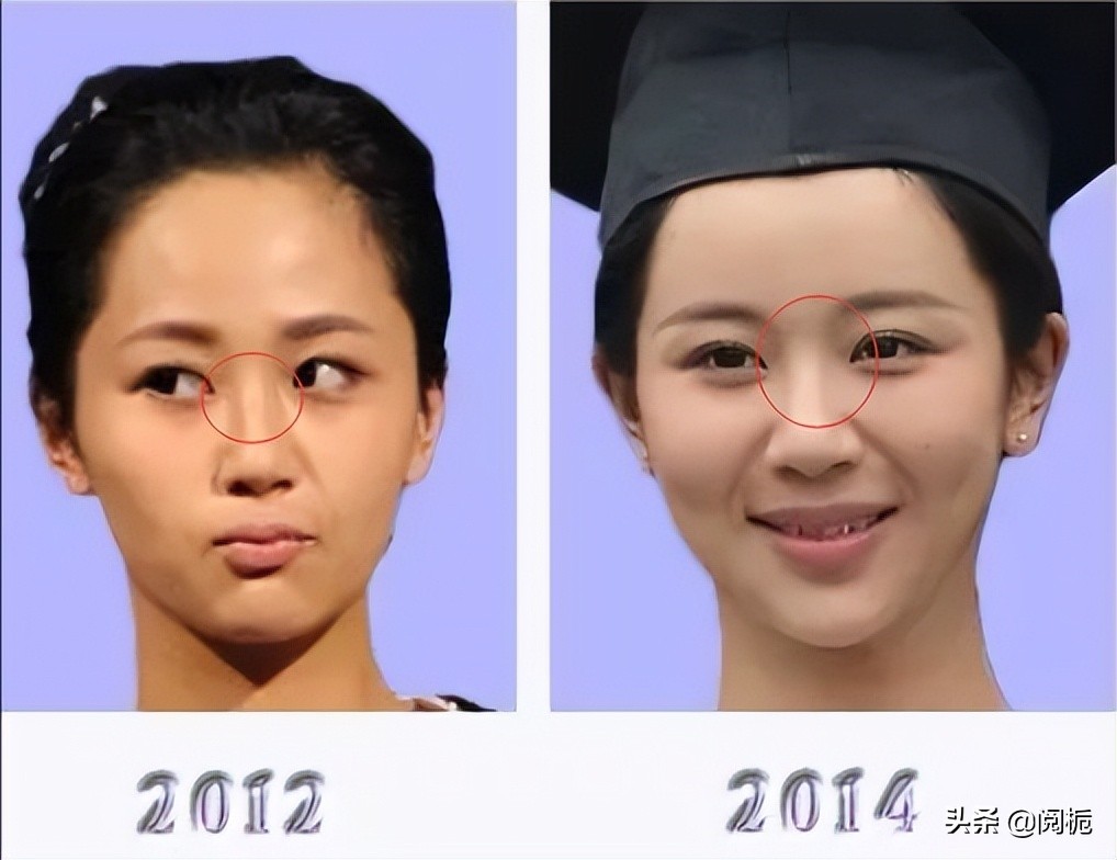 不仅脸型从原来的方形脸变成了瓜子脸,鼻子也变得更加精致小巧,眼睛也从原来的细长变得更加灵动。