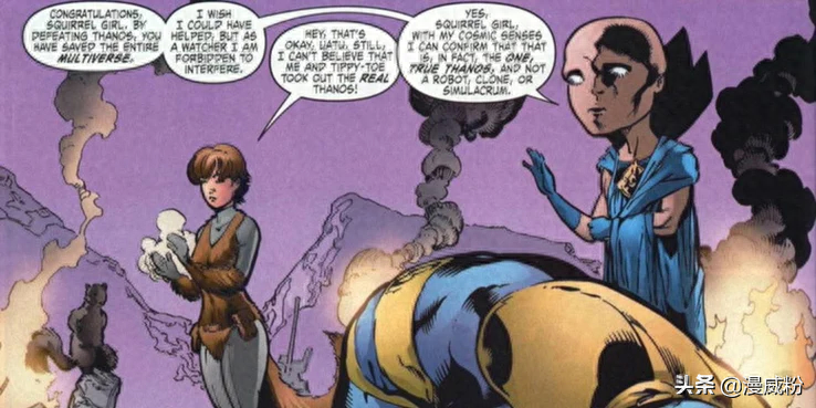 虽然能力听起来很鸡肋,但松鼠女孩的战斗力却令人发指。她曾在观察者的见证下,打败了不可一世的灭霸。