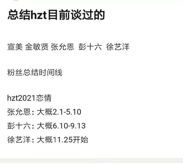 有韩国偶像宣美以及素人金敏贤,还有网红彭十六、张允恩等人。而且光是2021年,黄子韬就谈了三个女友,有人晒出时间线,张允恩、彭十六、徐艺洋都是2021年的暧昧对象,换女友的速度相当迅速,有的甚至空窗期不到一个月。其中张允恩和黄子韬游戏多同款,而且女方还拥有黄子韬公司的自制口罩,疑似住在黄子韬的豪宅。