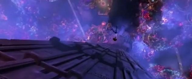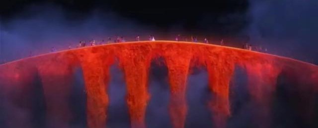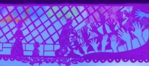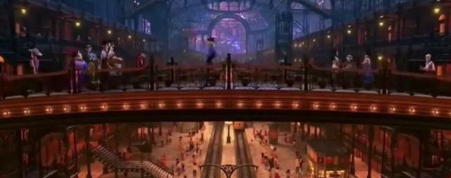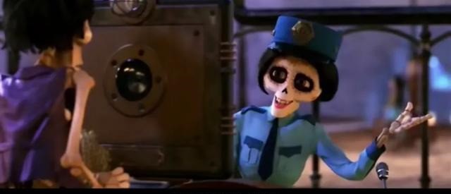 经过一条长长的花瓣桥,来到了通行入口处。只见一个穿着破烂的骷髅人(埃克托)刷脸失败,无法回家探亲,却强制逃出通行口,最后淹没在花瓣桥中又被治安官抓了进去。