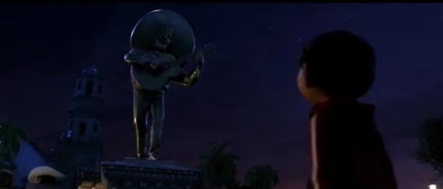 由于米格尔没有自带吉他,无法成功报名才艺比赛。看着偶像的石像,看到"抓住机会"四个字,米格尔瞬间有了主意。他来到了悼念亡灵的地方,找到了偶像的墓地,在里面找到了那把德拉科鲁兹在世时的吉他。