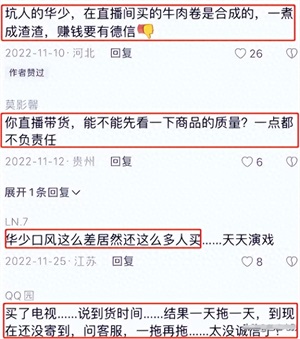 网友气愤地讨伐,说他带货完全不顾商品的质量,对消费者不负责任。