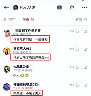 因为李玟的事,很多人对华少失望至极,问他“算什么男人。”“你别出来了,看到你就想yue.”