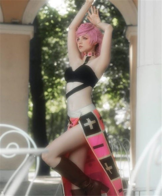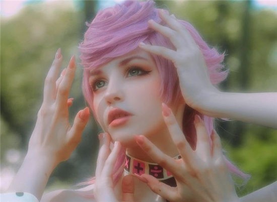 tenletters是来自俄罗斯的,最近她COS了JOJO的奇妙冒险黄金之风的女主角特莉休·乌纳,一头粉色的头发,还原度还是可以的。
